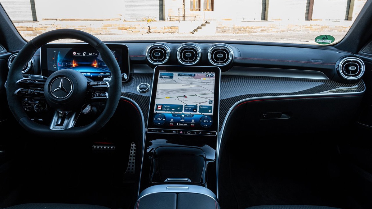 座舱方面,该车搭载 12.3 英寸全液晶仪表盘和 11.9 英寸中控触摸屏双联屏,内置 MBUX 智能人机交互系统,提供怀挡式换挡杆,继续配备“双翼式”AMG 多功能方向盘。